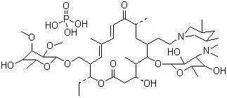 3、替米考星的分子式為C46H80N2O13,分子量是869.13 ;磷酸替米考星的分子式為C46H80N2O13.H3PO4,分子量是967.14 。